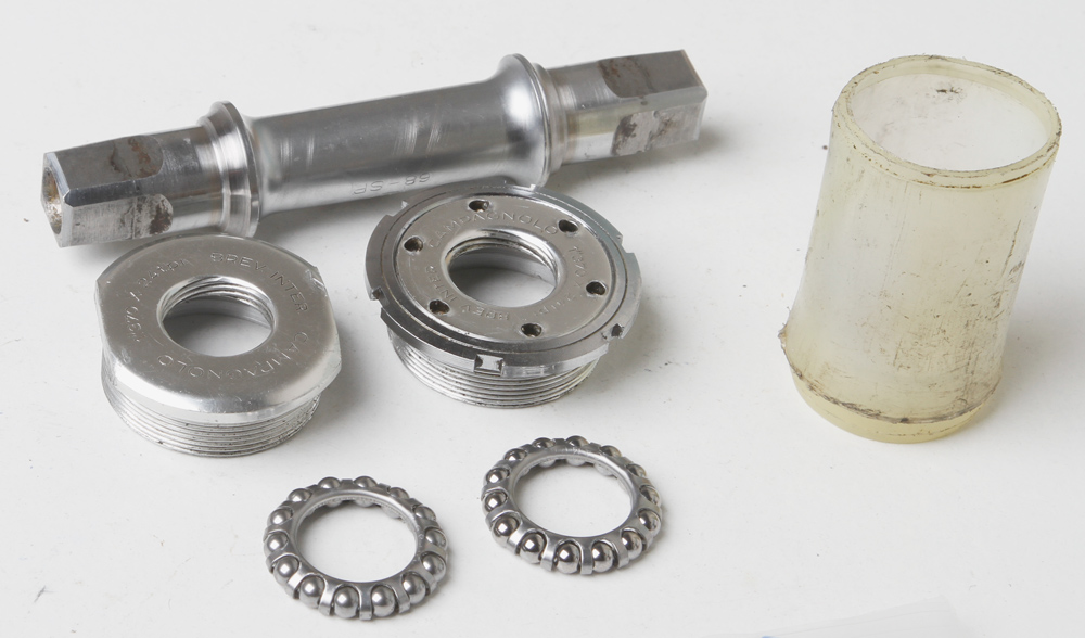 BBE7A CAMPAGNOLO SUPER RECORD PISTA (TRACK) TITANIUM BOTTOM BRACKET 109mm axle marked 68-P-120, axle is later type with nuts, no sleeve Excellent £115