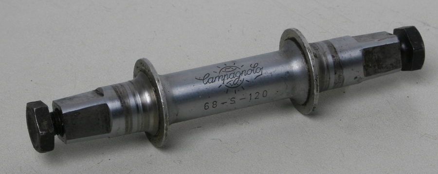 AXLES to suit English or French/Swiss BBs BBEA8 Campagnolo Record 68-S-120 early type axle really quite unusual very good, one small pit though hence £25
