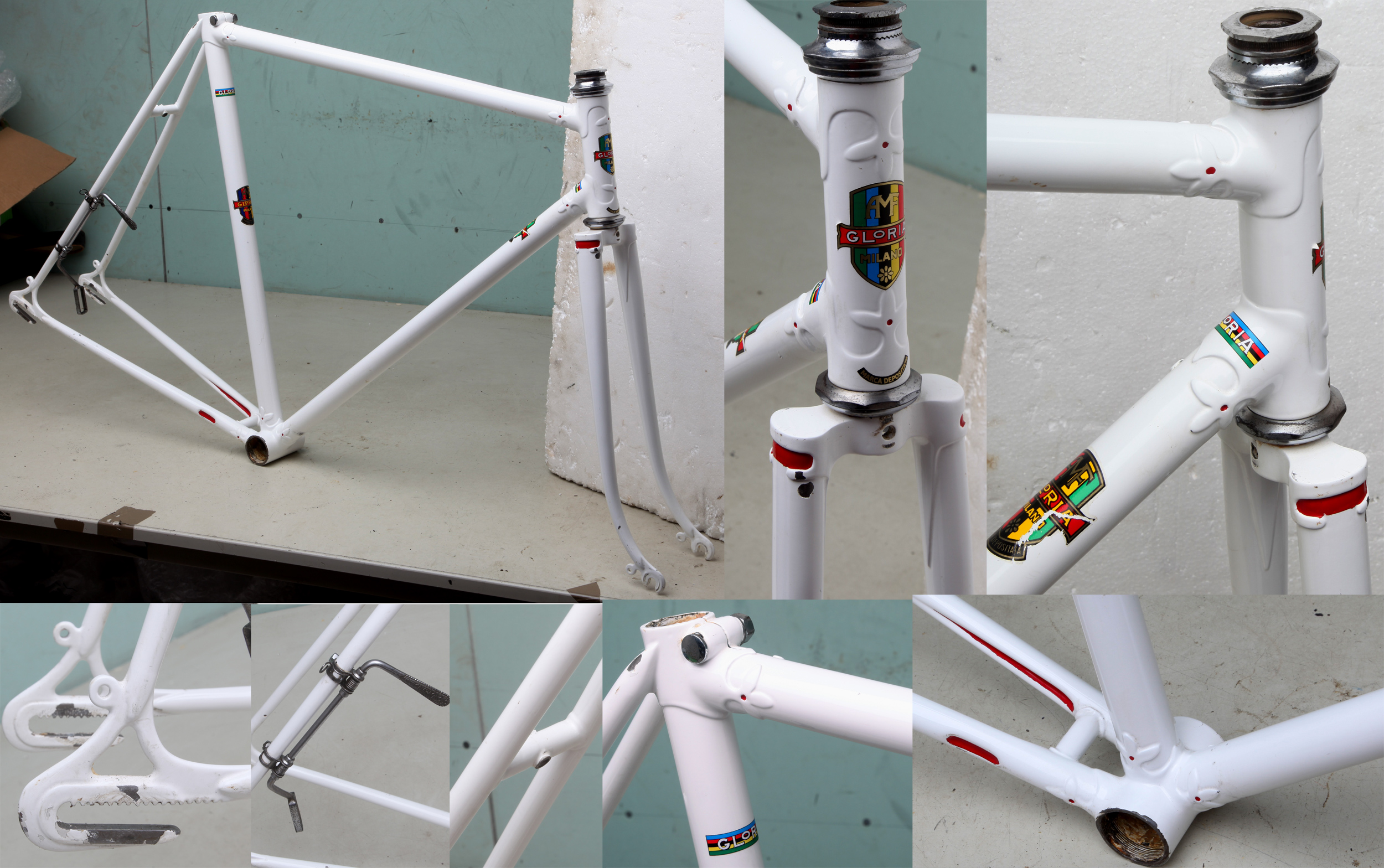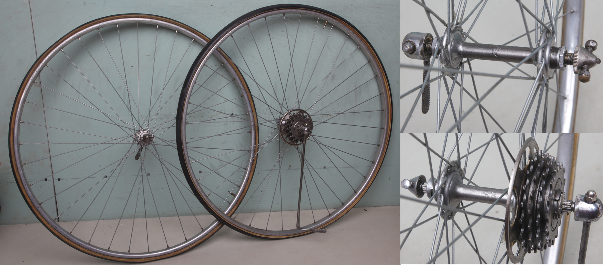 This Gloria road frame was built for an Italian professional rider in 1937 for use originally with a Vittoria Margherita gear – he later had the rear dropouts replaced with ones suitable for a Campagnolo Corsa gear… It comes complete with an excellent Campagnolo Corsa gear and set of wheels… £2250