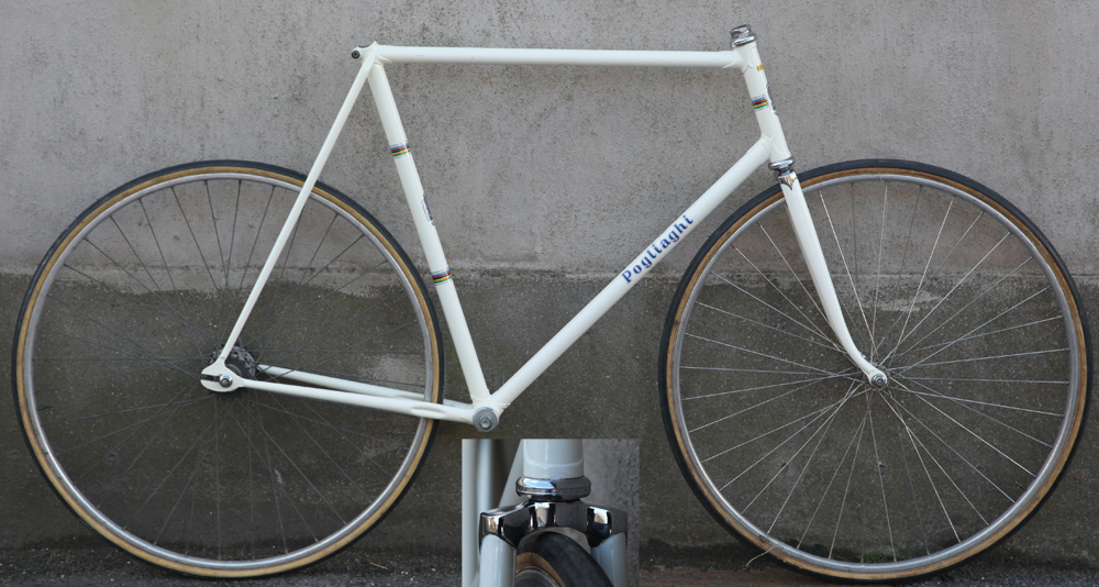 Sante Pogliaghi was one of Italy’s most revered framebuilders through the 1960s and 70s ranking alongside Cinelli, Masi and De Rosa. This track frame dates from c1963 and has been very nicely restored. The frame exudes pure quality… Very, very rare. £925