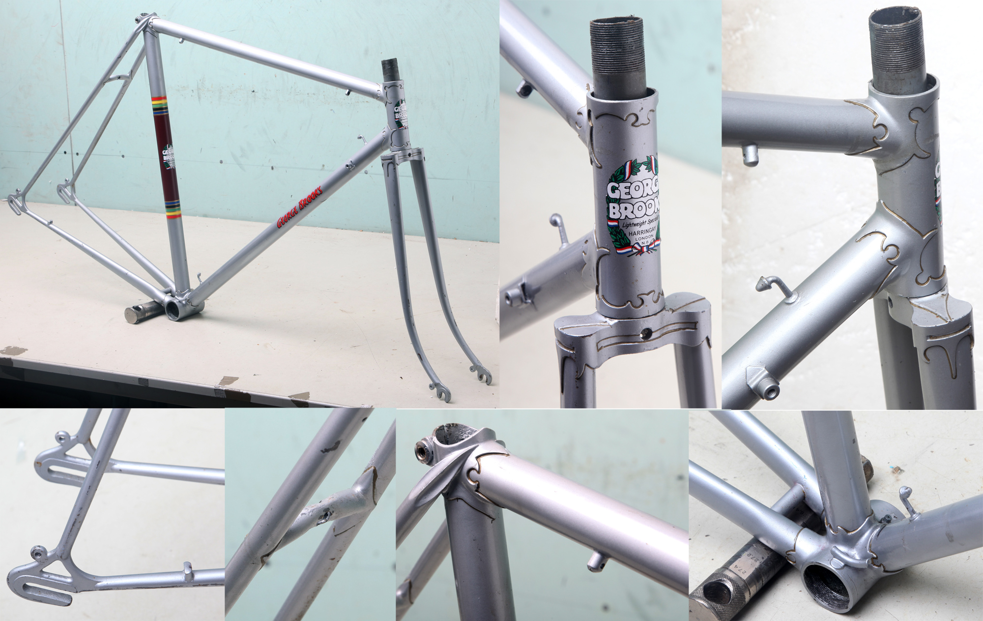George Brooks had a cycle shop in Haringey, north London. See http://www.classiclightweights.co.uk/builders/george-brooks.html for more information. He moved his shop to Bristol in 1958. His frames were built by several different framebuilders including Ephgrave, Wally Green, possibly Vic Edwards and others. I think this is quite likely to be a Vic Edwards built frame judging by its style and fittings. The Nervex Pro lugs have been filed beautifully, the seatstay bridge is typically Vic Edwards and he certainly used that type of the seatstay top… The paint is in excellent condition. £245