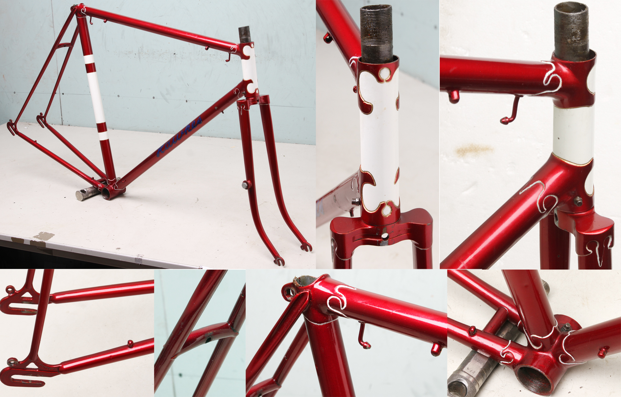 This Holdsworth Cyclone road frame with its stunning ornate lugs has been beautifully refinished in an attractive red paint and is ready to build up. £325