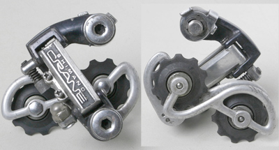 SGR2B SHIMANO CRANE SILVER REAR GEAR 2nd type c1975–7 metal pulleys from the time when Cranes were part of the Dura-Ace group Very good but one graze £29