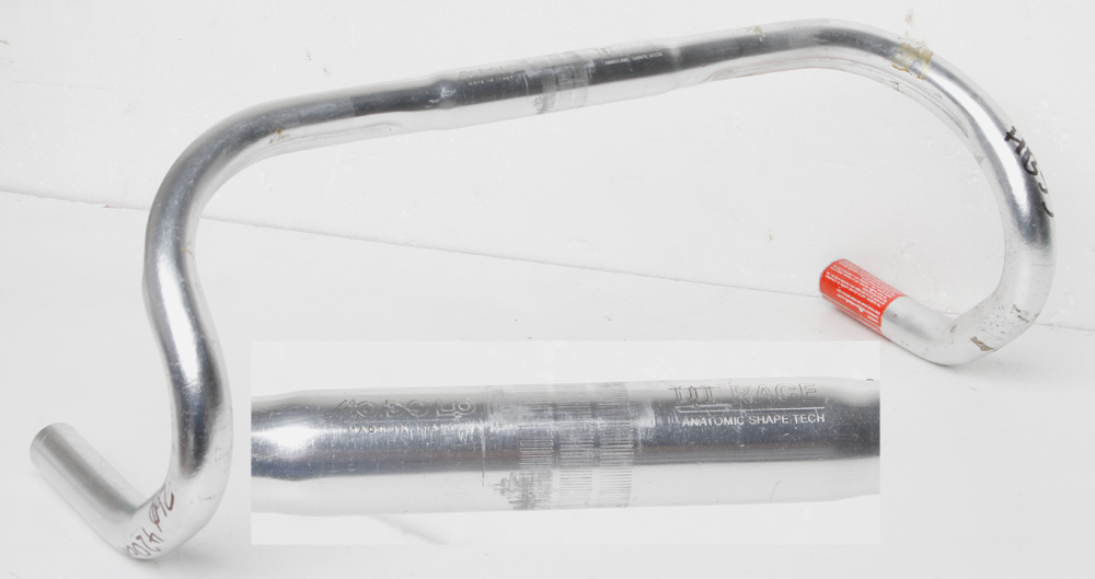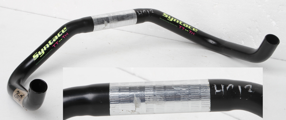 Handlebars: 26.0mm Clamp DiameterHandlebars for older style quill stems come with different centre sleeve diameters – this should be matched to the clamp diameter of the stem. Common centre sleeve diameters are 26.4mm (most Cinelli pre-1995), 26.0mm (3TTT, Mavic, some ITM, some Nitto) and 25.4mm (SR, GB, some Nitto and ITM) Please note that older aluminium bars should be checked carefully and frequently for cracks especially if there is scoring on or near the clamp area. For other sizes of handlebar: Please contact me at: hilarystone@hilarystone.com to check on availability and confirm shipping cost. 26.0mm Bar Clamp Diameter HB13 SYNTACE TT TRI LO PRO 38cm ctc ** New Old Stock** £49