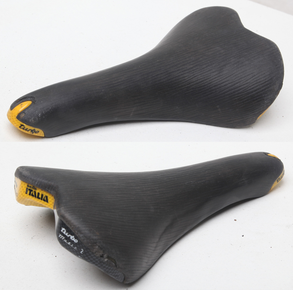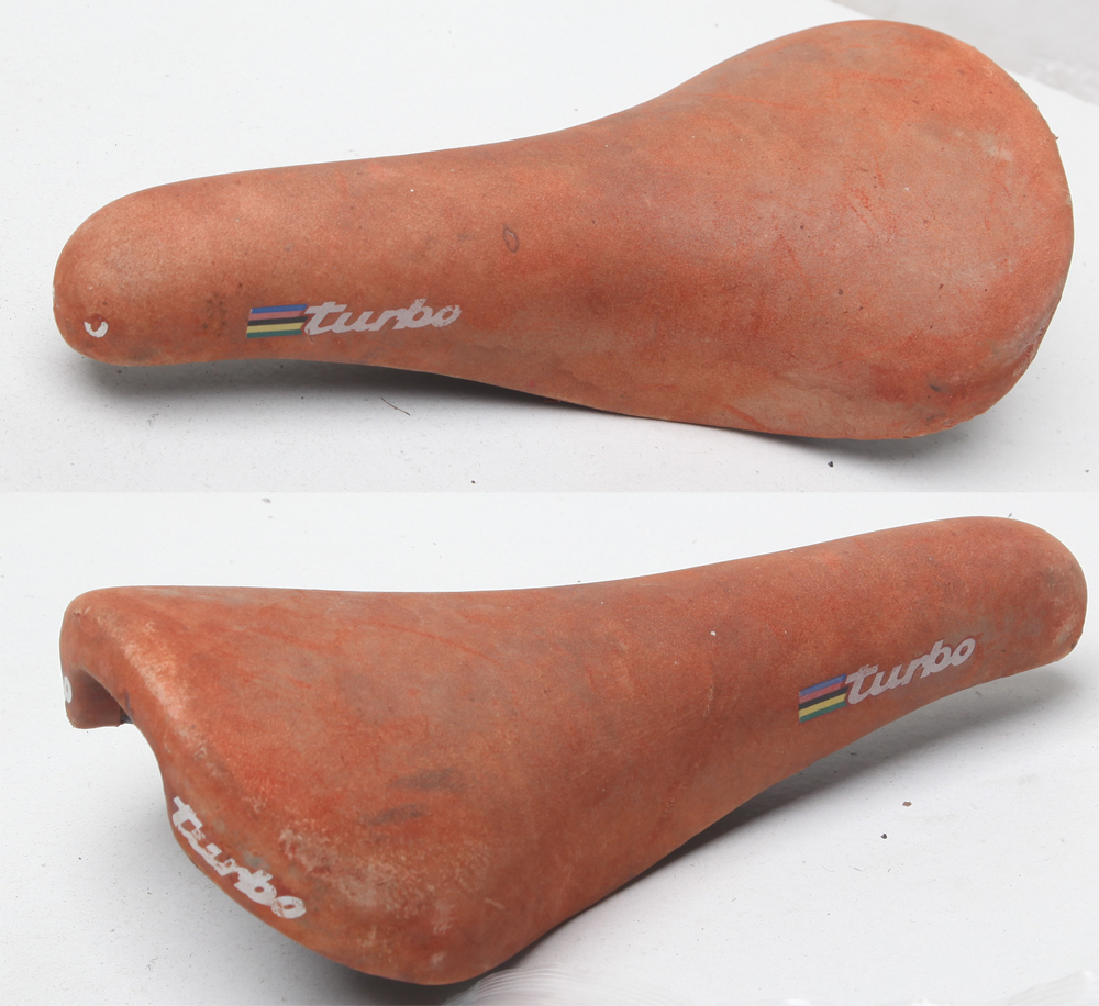 SL12C SELLE ITALIA TURBO HINAULT Brown a corner scuff and a number of marks £23 Please click on image above to get a large image with views from both sides of the saddle Leather saddles