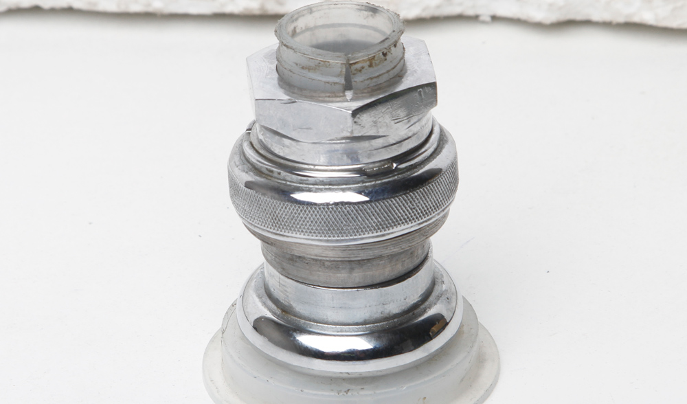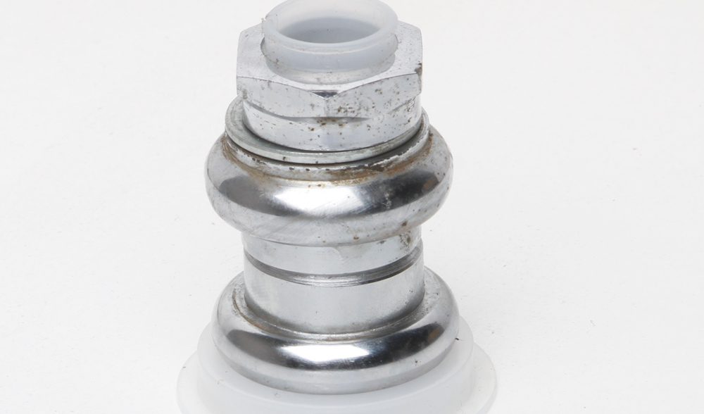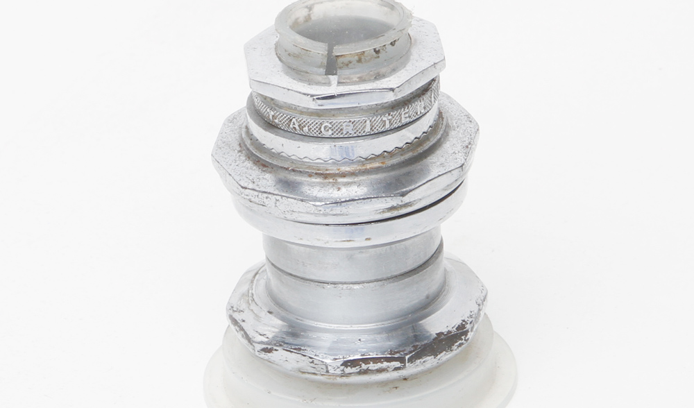 CLASSIC CORNER: HeadsetsClassic Corner is for pre-1970 parts and accessories. Please select a category in the sub-menu below… Headsets There was also another variant: the top race was screwed but instead of push races they used the same races as the headclips which dropped into the head lugs. Like the headclip sets these almost always used 1/8in ball bearings. These have a very shallow stack height of about 20mm. Tandem headclip headsets have several different standards set around 1 1/8in steerer tubes but with different lugs; generally they are not interchangeable between makes. We check the headsets we sell very carefully for pitting or brinelling. All headsets we sell are free of pitting or brinelling unless it is stated otherwise in the description. I offer some modern headsets with shallow stack heights which can be used on older frames with 26.4mm crown race diameter. I include a couple of suggestions at the bottom of this page. Headsets are one of the most difficult parts to fit correctly in part because special tools are often needed. We offer a fitting service for £15.