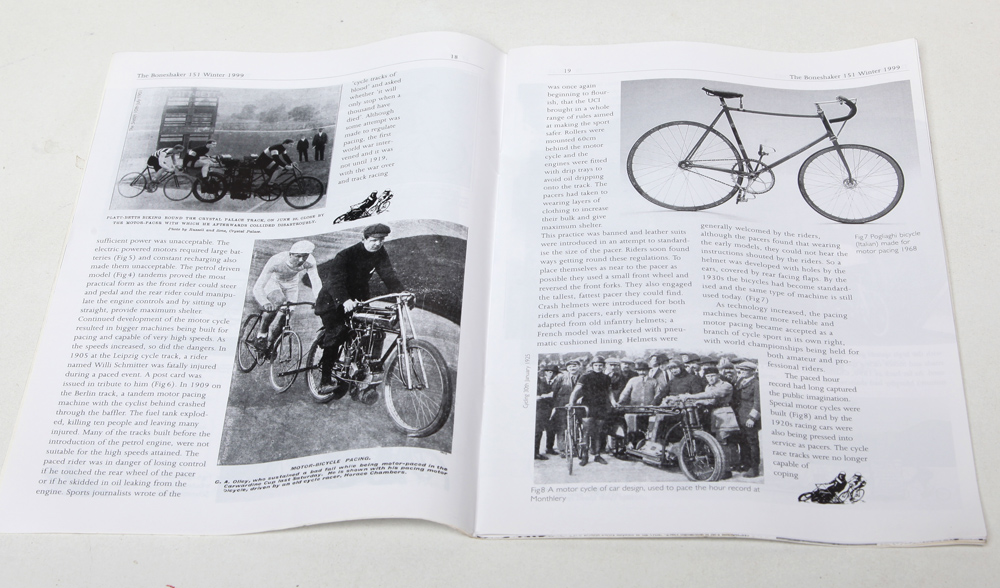 It contains a definitive history of Imperial Petrel (joe Cooke) lightweight bikes from Birmingha, Lucas Gem locks, French Classic road races in the 1890s, Barnshaw a Manchester lighteweight framebuilder, pacing machines and early Humber. £5