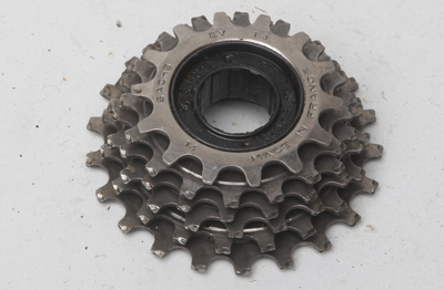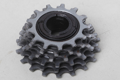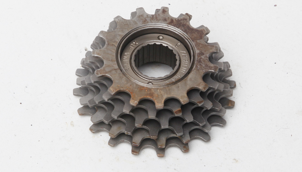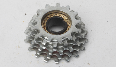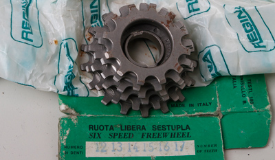 Freewheels 6 speedFreewheels are fitted to threaded hubs – and should not be confused with cassettes which normally fit on splines. All freewheels are English/Italian threaded unless stated otherwise – English and Italian freewheel threads are to all intents and purposes interchangeable. The maximum rear sprocket size most race (short-arm) rear gears will take is 26T – please check with me if you need advice. Please contact me at: hilarystone@hilarystone.com to check on availability and confirm shipping cost. 6-SPEED FREEWHEELS STANDARD SPACING LARGEST REAR SPROCKET FW6-1 REGINA EXTRA FREEWHEEL 6spd 12–17T ** New Old Stock** £26