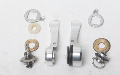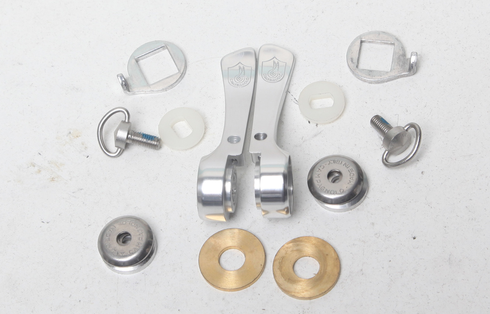 Please contact me at: hilarystone@hilarystone.com to check on availability and confirm shipping cost. CAMPAGNOLO GRAN SPORT SHIFTERS 1950s  CGS1 CAMPAGNOLO GRAN SPORT SHIFTER LEVERS no internals or other parts c1951 chrome bronze £475