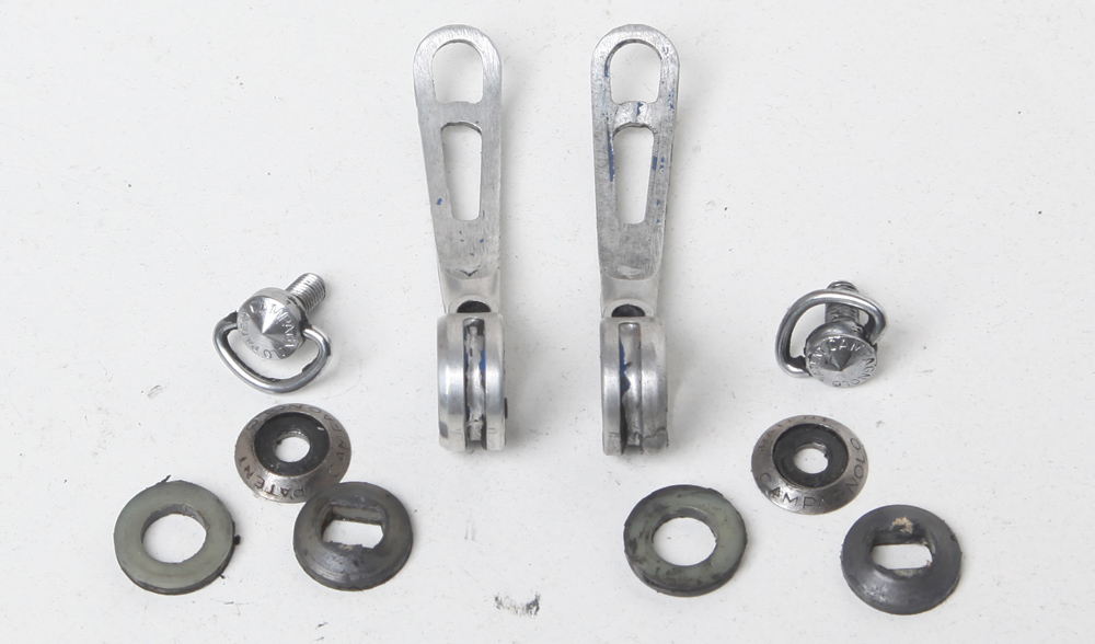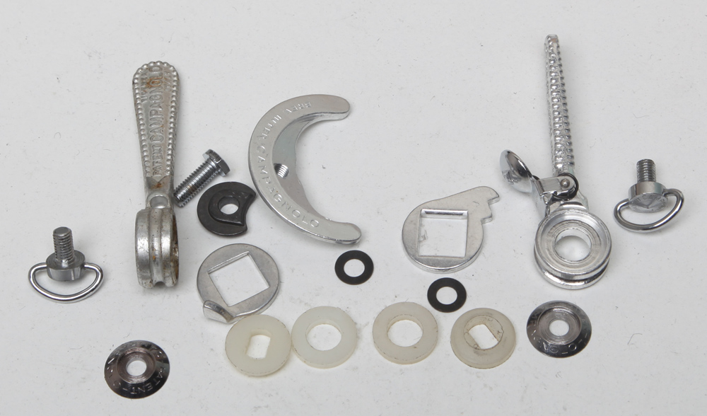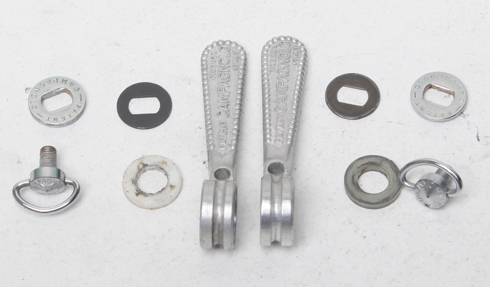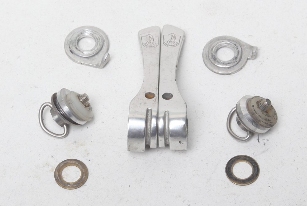 CAMPAGNOLO RECORD DOWN-TUBE SHIFTERS BRAZE-ON 1960s–1980s without outer cable stops CGS5A CAMPAGNOLO PORTACATENA to fit to standard Campagnolo dropouts. The Portacatena fitting allows the rider to move the chain to the chain holder whilst still pedalling removing the necessity for handling the chain when changing the rear wheel. ** New Old Stock** £55