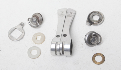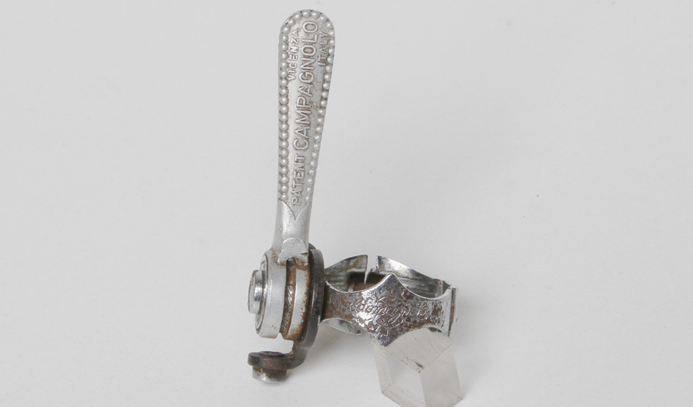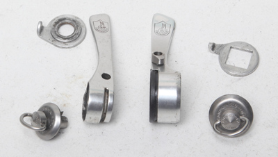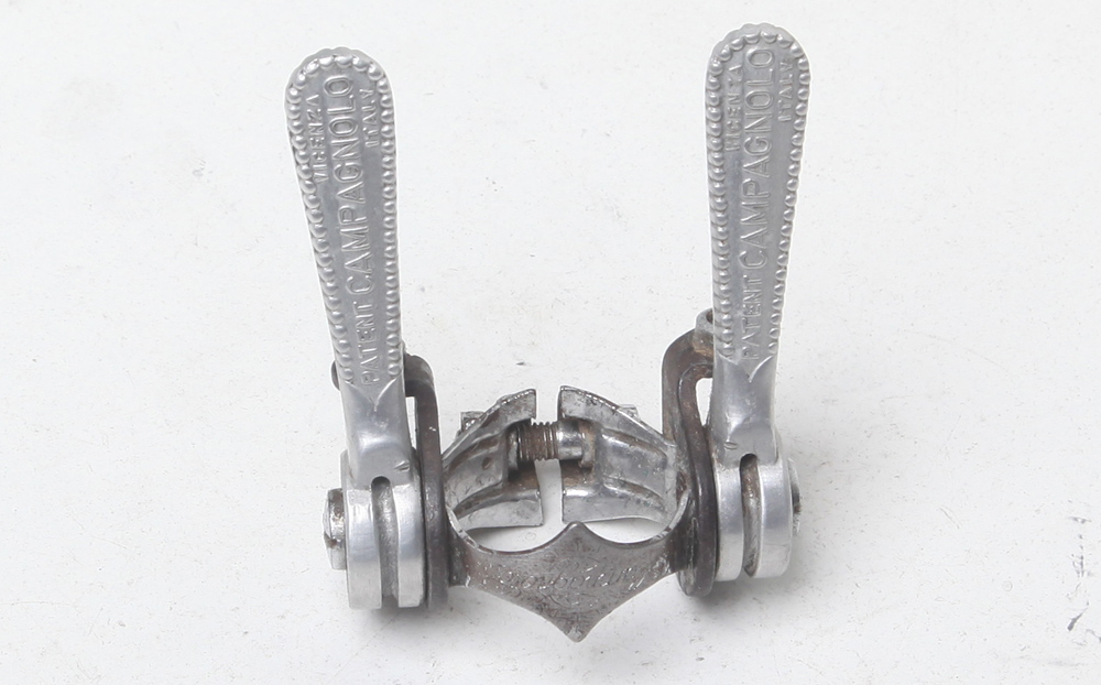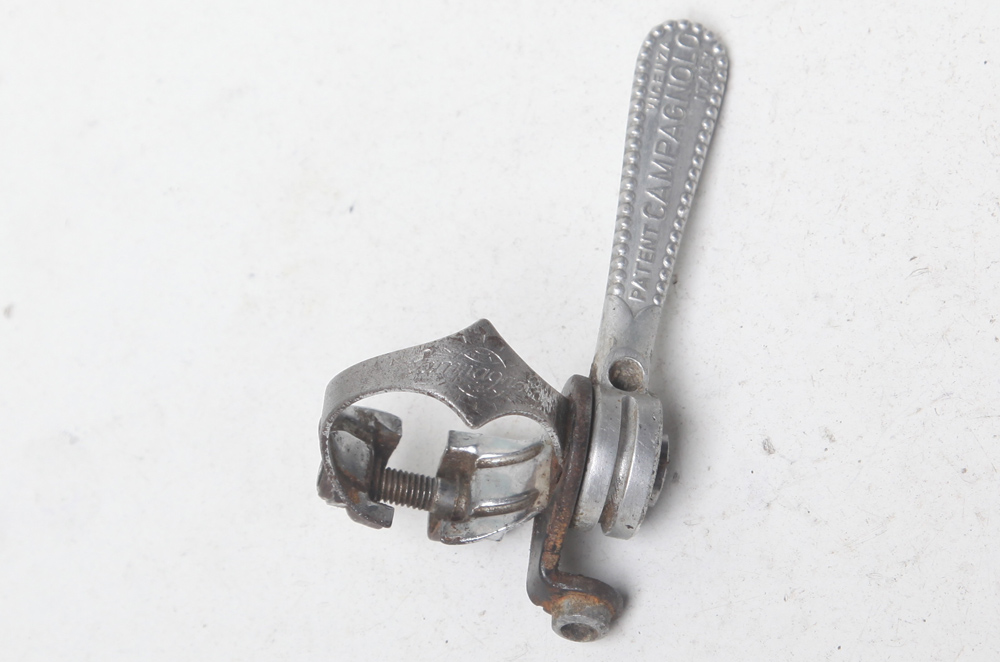 CAMPAGNOLO GRAN SPORT & RECORD SINGLE SHIFTERS 1950s–70s with outer cable stops CGS3A CAMPAGNOLO GRAN SPORT SINGLE LEFT-SIDE SHIFTER for use with a front gear in conjunction with Bar-End shifter for the rear gear 1960s Band is slightly rusty £32