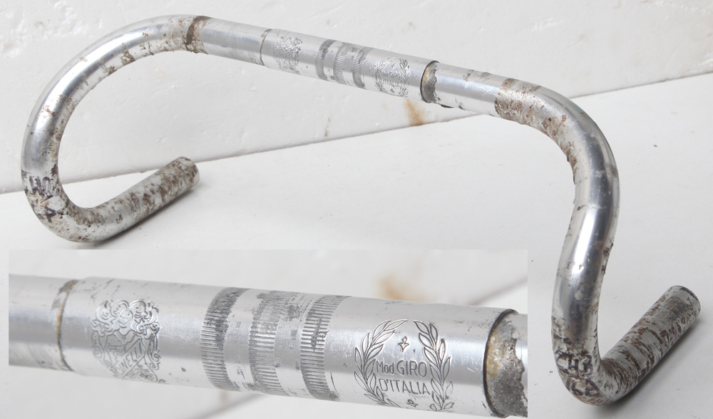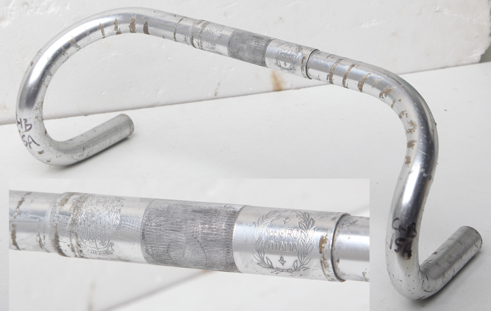 CHB15 CINELLI GIRO D’ITALIA 39cm ctc, badge and shield Early 70s Quite marked and grips slightly shortened £24