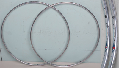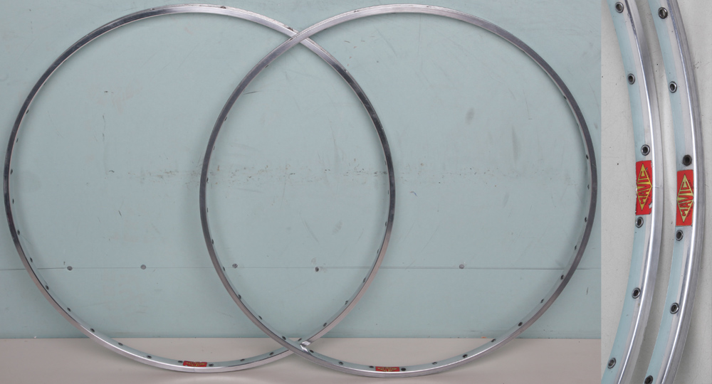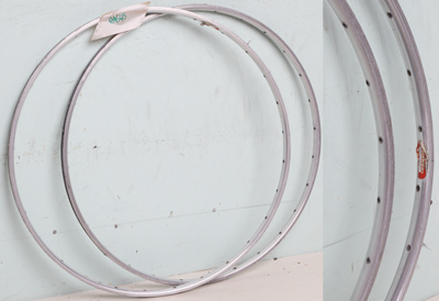 SPRINT RIMSSprint rims are for use with tubular tyres which are either stuck on with glue or tape. Almost all are equivalent to 700C rims in size; there are some other sizes available which these days are most commonly used for the front wheel of lo-pro or stayer frames. All rims listed here are 700C (which have confusingly been called 27in sometimes) in size unless otherwise specified. I have a selection of 24in and 26in sprint rims not listed; please enquire if interested. All rims are shipped in purpose made boxes with bubble wrap packing. The cost of this is included in the shipping costs. Please select other rim types and sizes in the sub-menu below...